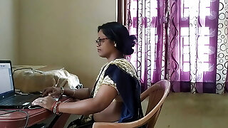 Bengali Bhabhi, dressed in a maxi, pressed her knockers a lot and quenched the itch of her pussy.