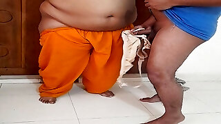 while Tamil grannie wearing saree the grandson gets Hot & Tieds Her hand and pounds her Fat caboose, next day again aunty on her bed