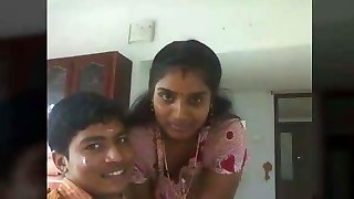 I was watching porn vid on phone in bed room and holding dick in arm Tamil aunty Bavana came in shocked I pulled her and ha