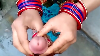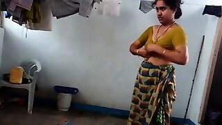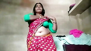 Bengali Bhabhi, dressed in a maxi, pressed her knockers a lot and quenched the itch of her pussy.