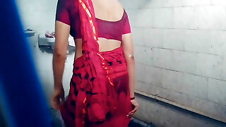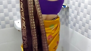 Yellow Saree Mein Apni ko Nahate Dekh Kr Raha Nahi Gya To Unko Bathroom Mein Hello Ghus Kar Tang Utha Kr Choda